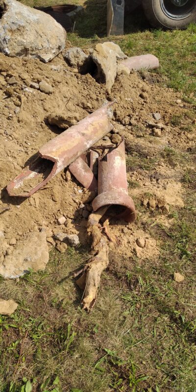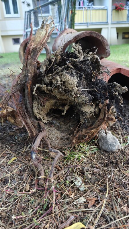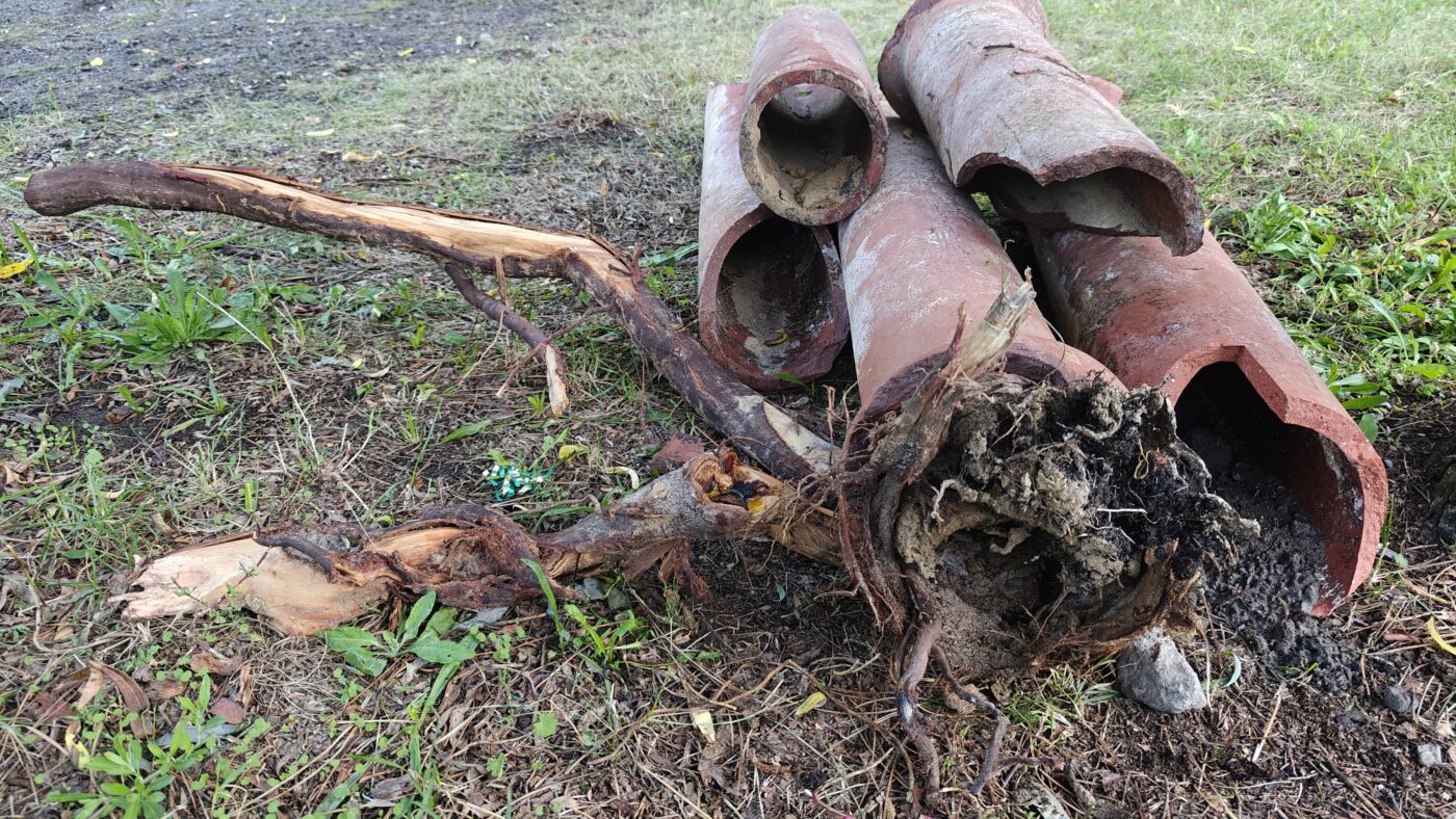 Niekontrolowane nasadzenia drzew bez uprzedniej zgody SM spowodowały dewastację podziemnej infrastruktury – w tym przypadku rur kanalizacyjnych.